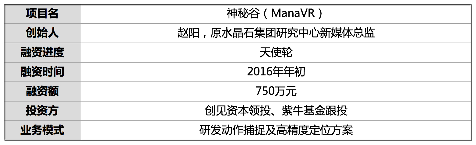赵阳在2015年成立神秘谷(ManaVR),研发VR动作捕捉方案,主要应用于多人大空间互动场景。
