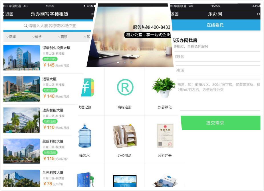 目前,乐办网拥有PC端、微信端两个平台,收集深圳600栋写字楼信息,拥有10000套房源,接触服务过300余家企业。