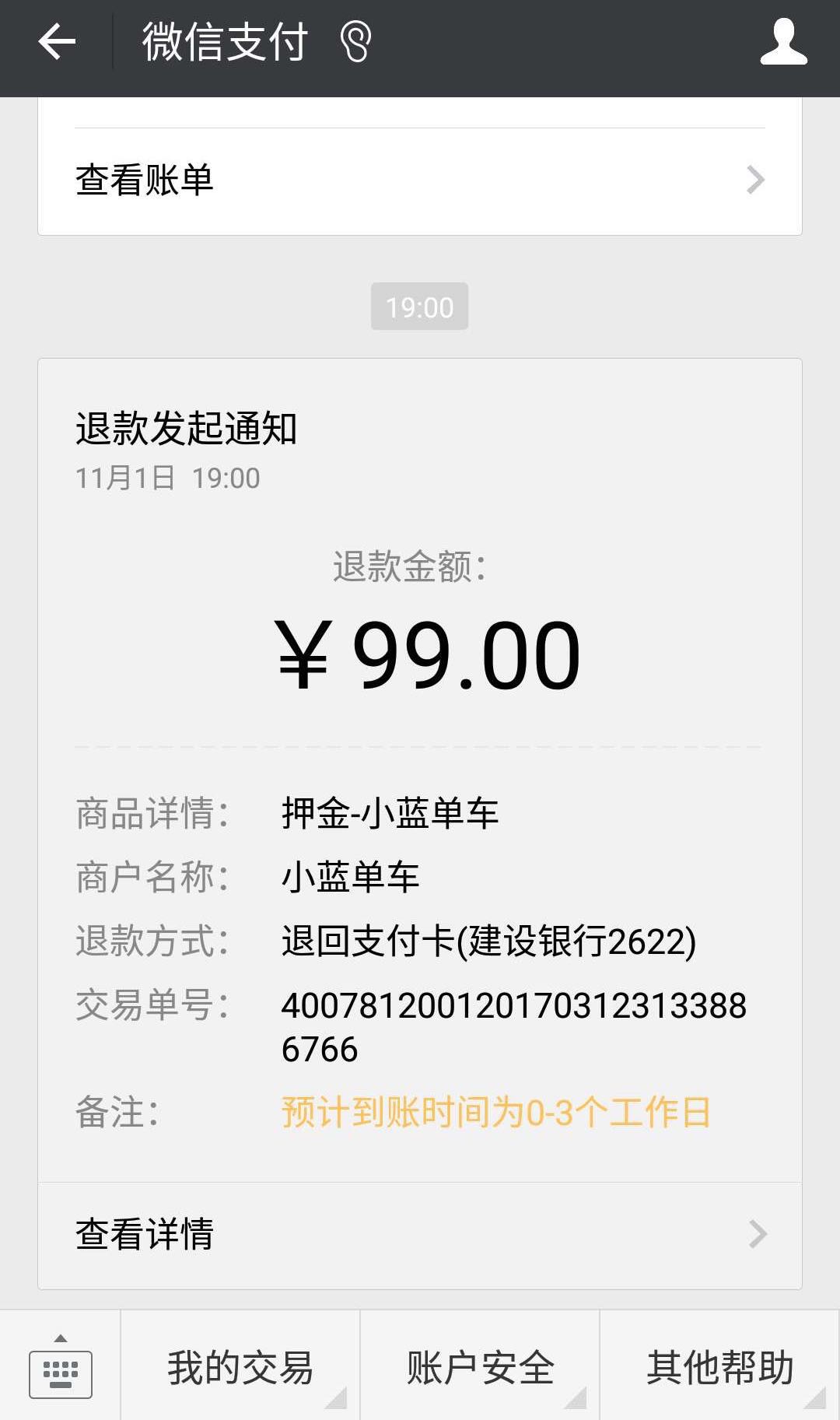 第一通客服电话便能接通,对方客服人员回应,前段时间出现系统故障,所以出现退款难的问题,现故障已修复,目前客服人员周末都在加班处理退款。对于记者反馈的10月25日的申请退款,对方给办理加急处理,约20分钟后,记者便在微信支付中收到退款成功通知。