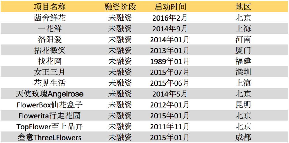 在O2O爆发期,诞生了不少鲜花服务,但我们最近进行调查,发现不少项目已无声无息结束了项目运营。从以下的死亡项目列表可以看出,这些项目大都集中在北京上海等一线城市,少数项目来自河南、福建、成都、云南等地区。
