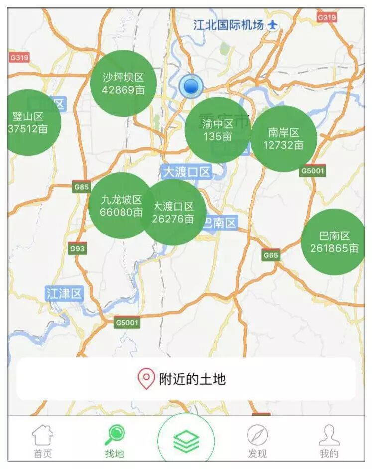 ◆    用户可在“聚土宝”App中查询附近的土地(图为重庆)