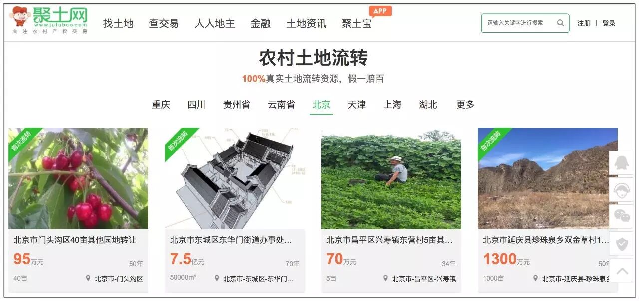 蛰伏两年,直到2015年4月,田靖隆的“聚土网”上线。“聚土网”采取了直营模式,在每个运营中心(重庆、四川)配备了20多名自有经纪人,负责提供辖区内所有的土地流转撮合、权证、农业后服、土地金融等服务。
