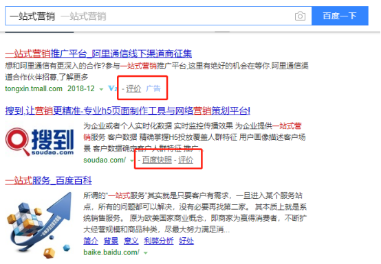 比如,营销类企业想要获得精准客户,最有效的方式就是在搜索引擎上进行竞价推广。网民在搜索“一站式营销”时,通常会点击含有“百度快照”的那条。