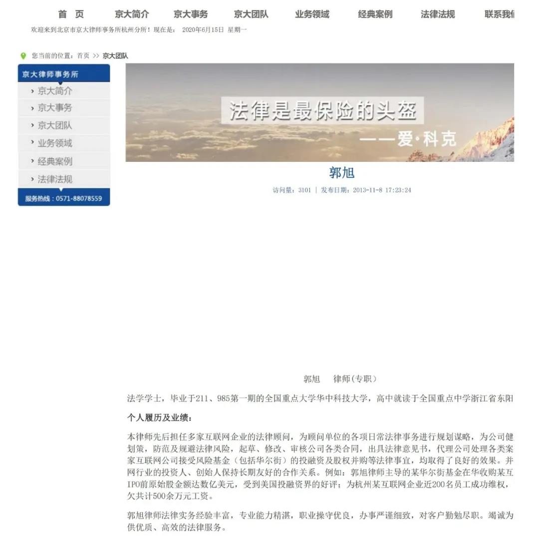 要点:郭建不仅懂法,且善于用法,其弟郭旭为杭州知名投融资律师。