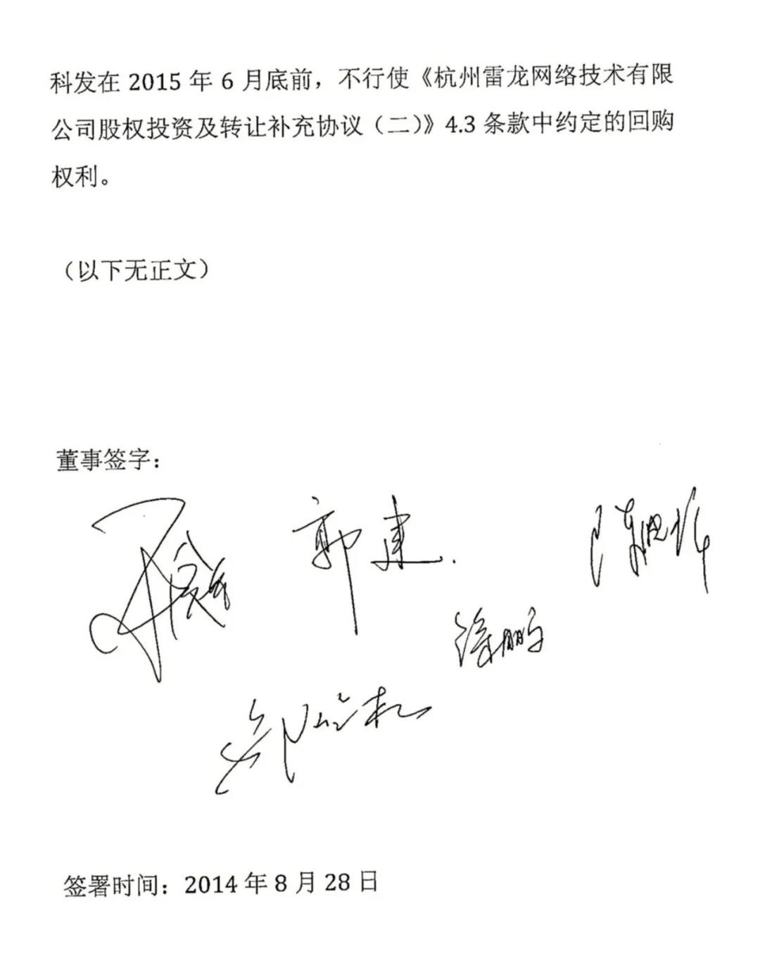 各方于2014年3月5日签订的《杭州雷龙网络技术有限公司股权投资及转让补充协议(二)》,说明是采用“双向对赌”,条款非常友好、公平。