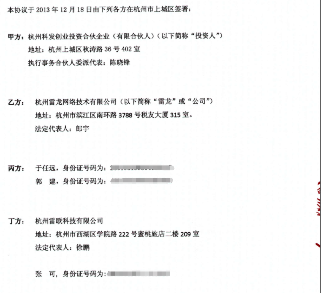 各方于2013年12月18日签订的《杭州雷龙网络技术有限公司股权投资补充协议》,于任远和郭建同为丙方,是并列的回购义务人。