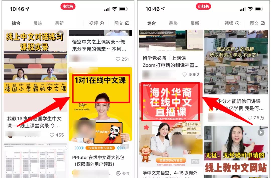 海外中文课程在小红书上投放的广告