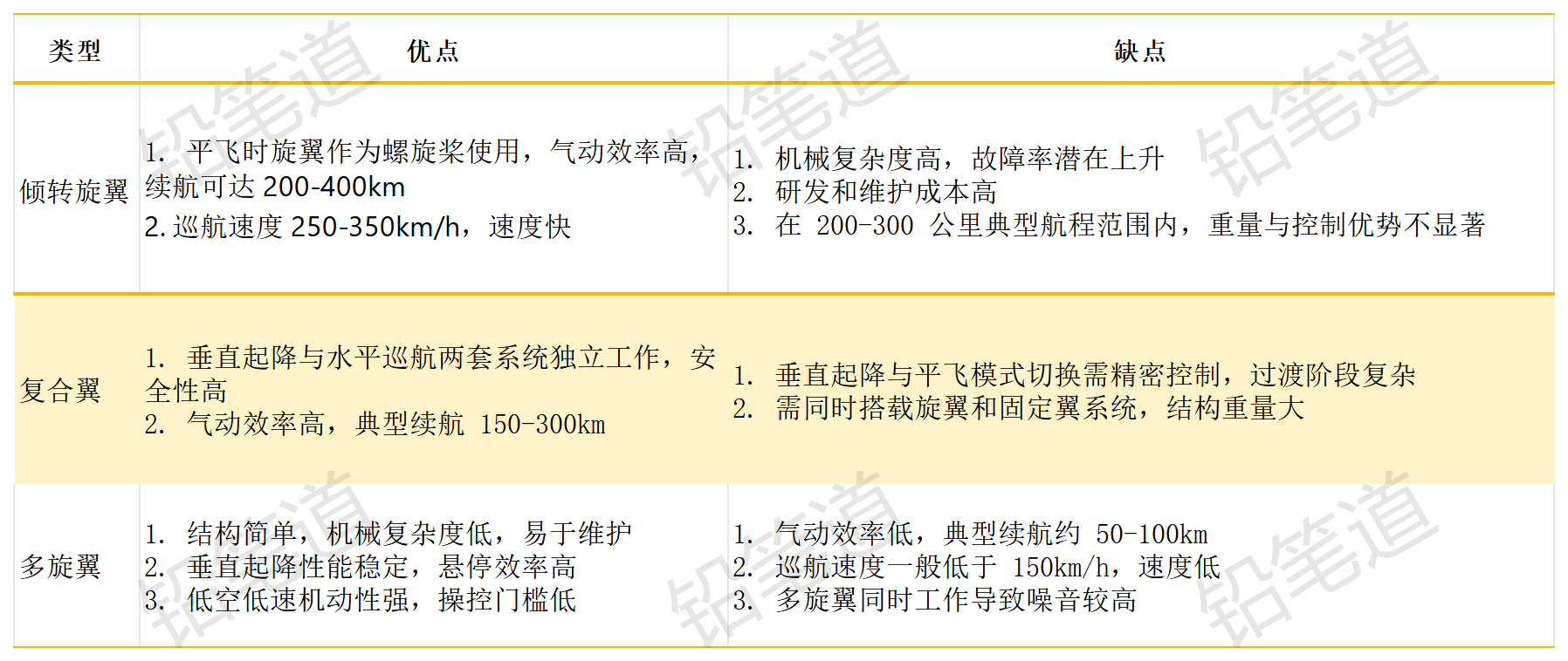 在技术上,除了之前说的多旋翼,还有倾转旋翼、复合翼。