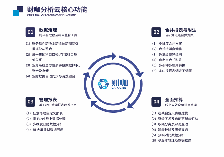 财咖分析云,为大型集团化企业和一些成长中企业提供了完整的数据中台解决方案。举例而言,对于拥有大量分支机构,且财务软件版本不一的大型企业来说,其提供了在原有财务软件上层的一重架构,可以实现跨版本、跨主体、跨期间的数据抓取与整合,进行科目映射整合,从而后续快速、准确地生成凭证级合并报表,让合并报表及附注编制工作达到95%以上自动化,减少烦琐的人工操作。同时,企业自有的诸多业务系统,财咖分析云也可以全方位运用多手段进行数据抓取、整合及存储,真正实现企业业财数据的完整与统一。
