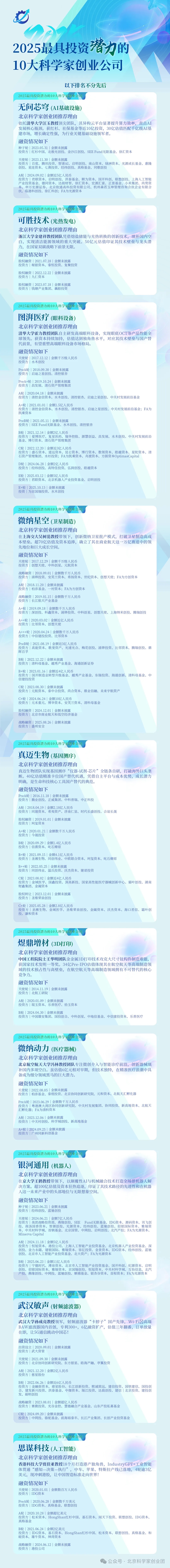 在此背景下,北京科学家创业团重磅发布《2025 最具投资潜力的 10 大科学家创业公司》榜单,从近百余候选企业中,精选出覆盖 AI、清洁能源、高端医疗等领域的 10 家硬核公司。他们将是科技强国进程中的重要参与者。