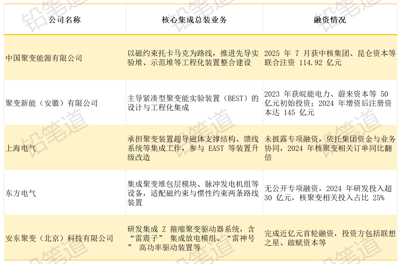 比如聚变新能主导的 BEST 装置,会采购西部超导的超导线材、安泰科技的偏滤器材料,再通过自身技术整合,建成能实现聚变反应的完整装置,是产业链的“核心枢纽”。