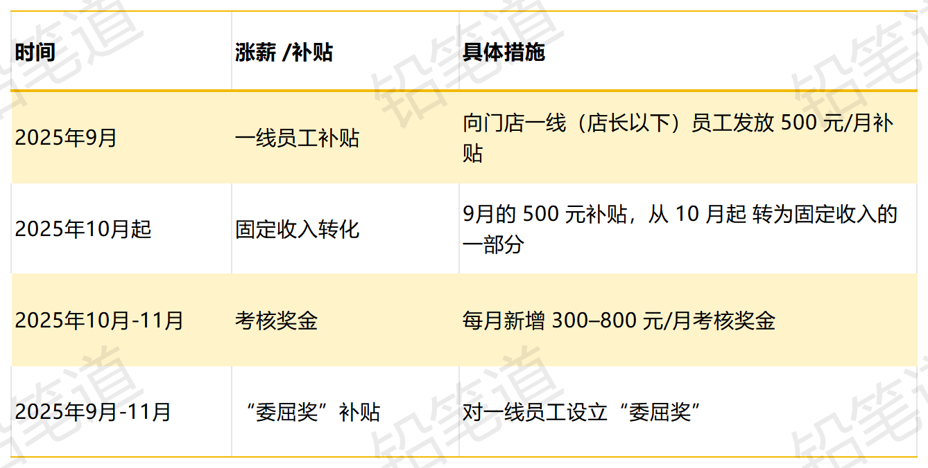 风波后,贾国龙(西贝创始人)召开1.8万人大会,宣布涨薪,9月先向店长级以下一线员工发放500元/人/月补贴,10月起该补贴转为固定收入。