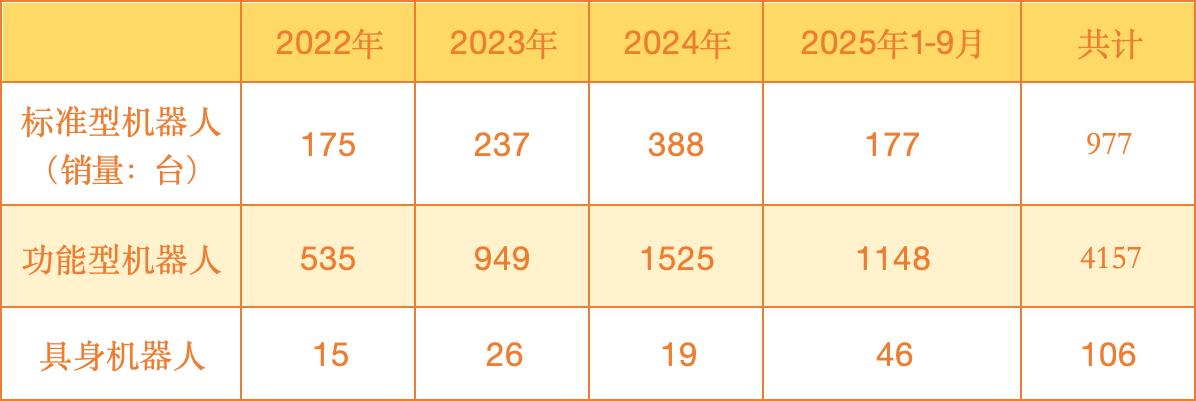 2025 年前1-9月,具身机器人实现收入1540.2万元,单台约33.4万元。