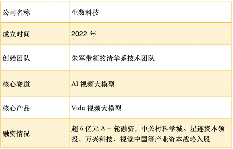 最近,成立不到3年的生数科技,完成超6亿元A+轮融资,成为国内视频生成领域最大单笔融资。