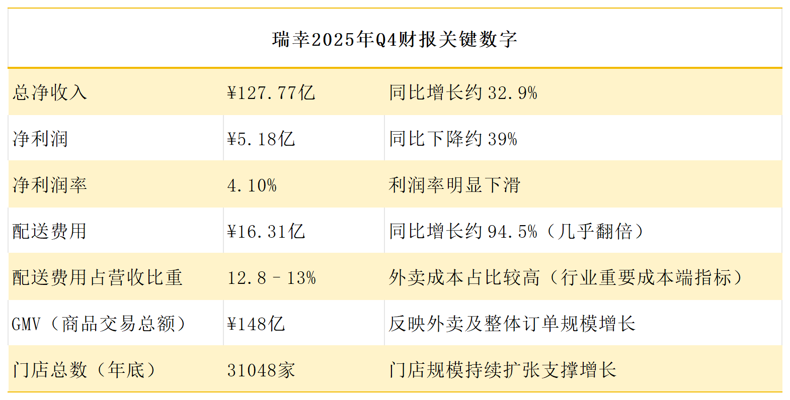 前几日,瑞幸发了份让人心里一紧的财报:2025年第四季度,营收涨了将近33%,利润却一下子跌了39%。127个亿的进账,最后落到口袋里的净利润只剩5个多亿。