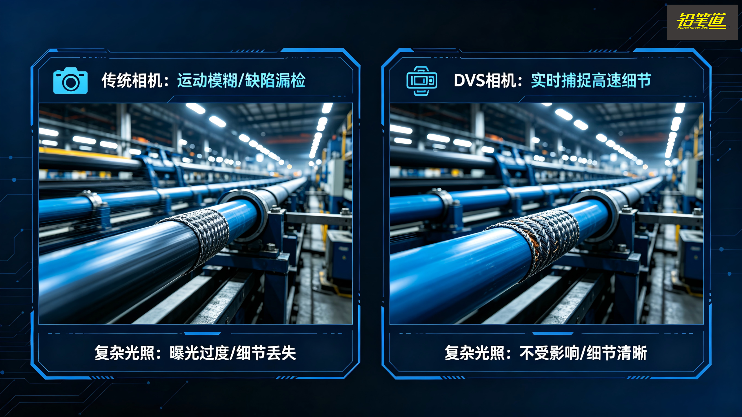 工厂里经常有强光、反光、明暗交替,传统相机在这种环境下很容易失真、漏检。但DVS的动态范围很高,对这种复杂光线更“抗造”,基本不受影响。