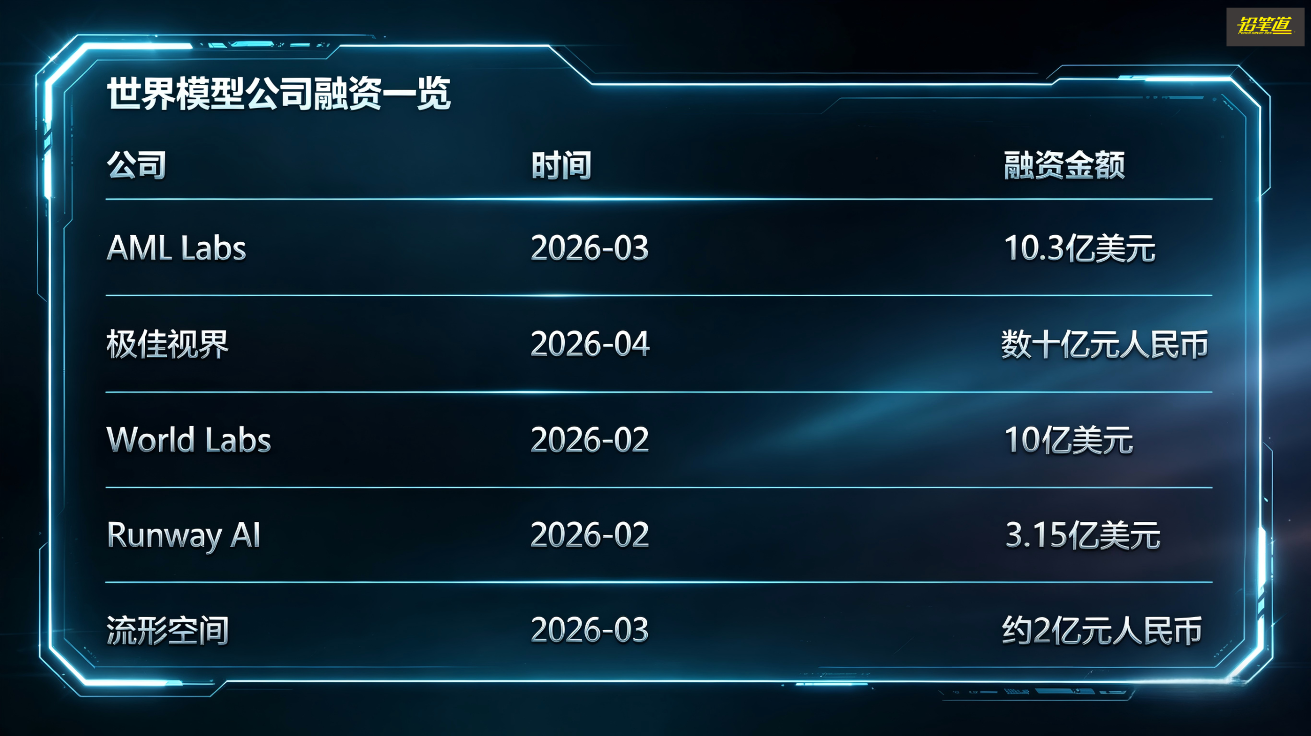 这种变化是全球性的。2026年一季度,全球围绕世界模型的融资明显升温。
