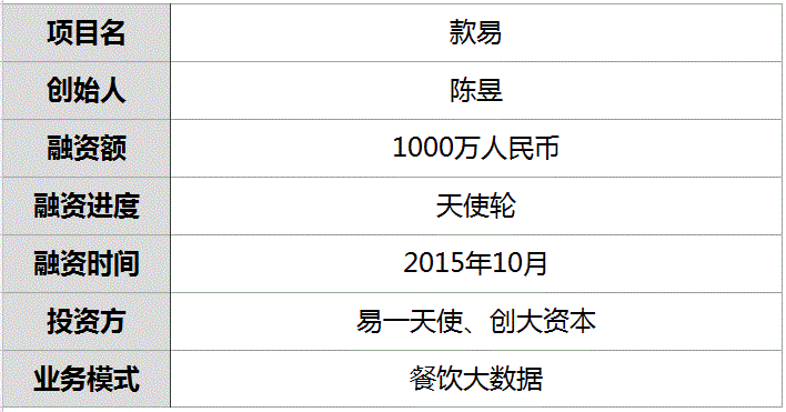 次月,款易获得了1000万人民币天使轮融资,由易一天使领投,创大资本跟投。