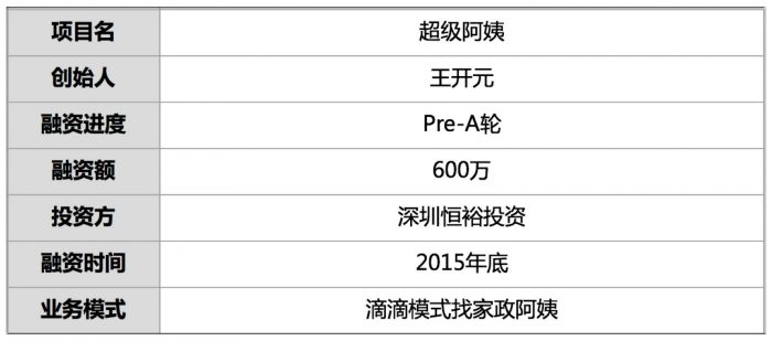 于是,王的精力再次转为钟点工服务。同时,超级阿姨获得600万Pre-A轮投资,投方为深圳恒裕投资。