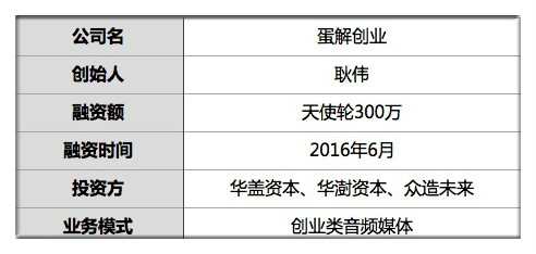 画了5篇后,6月,“蛋解创业”获得300万元天使轮融资,投资方为华盖资本、华澍资本和众造未来。
