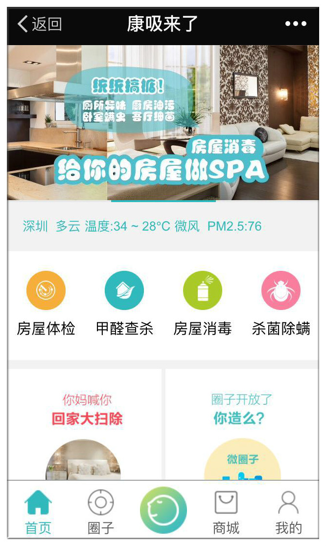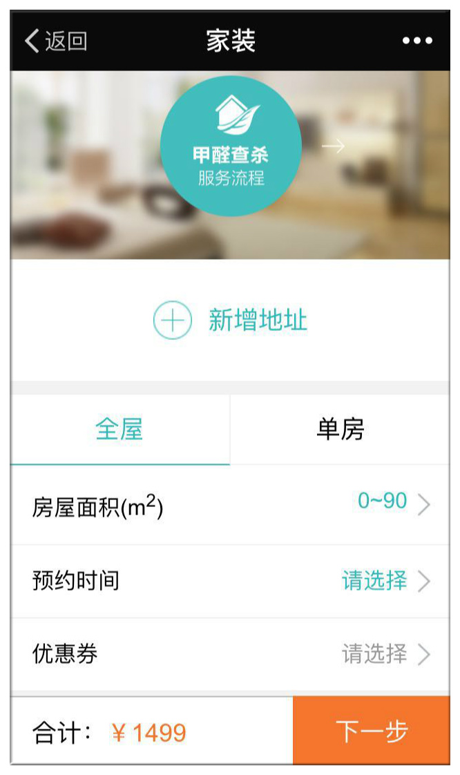 接下来的三个月,梁辉继续完善微信端界面。此外,围绕甲醛查杀,他新增了三项功能:房屋体检、房屋消毒和植物管家。