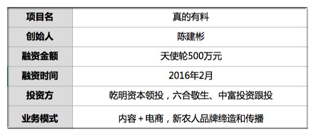 今年2月 “真的有料”获得乾明资本领投,六合敬生、中富投资跟投的500万元天使轮融资。